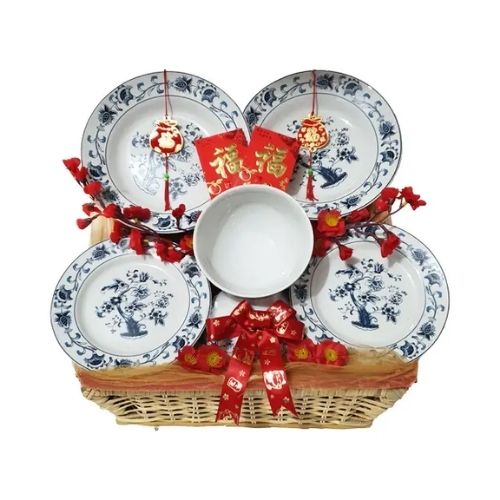 Terakhir, ada Bundle of Fortune - Hampers Imlek Pecah Belah yang menawarkan sentuhan elegan untuk Tahun Baru Imlek. Hampers ini berisi satu set piring dan mangkuk dengan motif biru klasik yang memukau. Motif birunya memberikan nuansa tradisional sekaligus mewah, cocok untuk melengkapi dekorasi ruang makan saat Imlek. Tidak hanya cantik, set pecah belah ini juga sangat fungsional untuk menyajikan hidangan khas Imlek bersama keluarga.